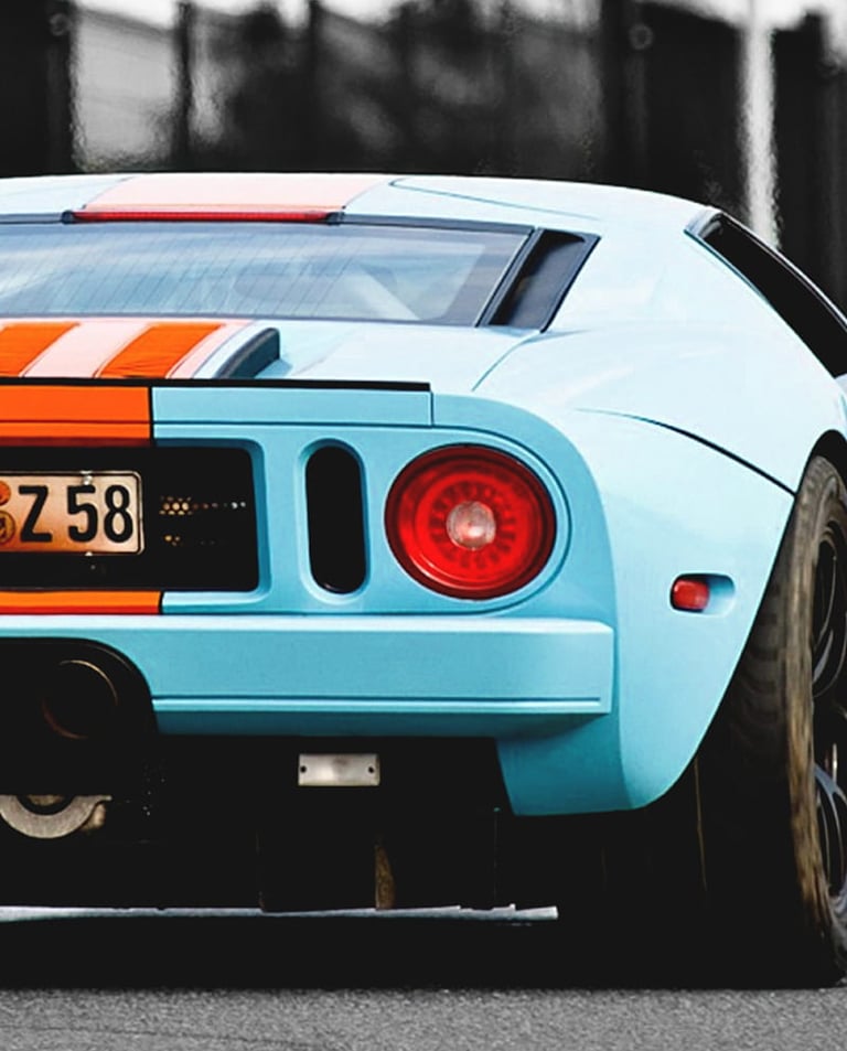 Gulf blue and orange paintwork, which became the most famous color scheme in motorsports history.