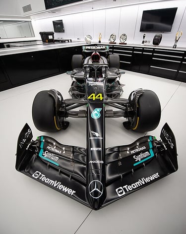 The Mercedes-AMG F1 W14 E Performance was the car used by the Mercedes-AMG Petronas team in the 2023 Formula 1 season, driven by Lewis Hamilton and George Russell. With a bold design and the return of the iconic black paint job, the W14 marked the team's efforts to regain competitiveness after a challenging 2022 season. Although not the most dominant car on the grid, the car brought technical advancements, cultural symbolism, and established itself as an essential part of Mercedes' recent history in F1.