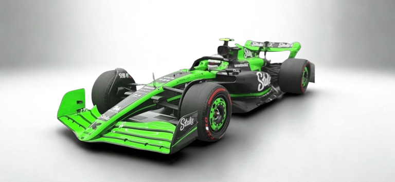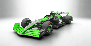 Black and fluorescent green livery, a radical departure from Alfa Romeo's red and white, highlights the new Stake identity.